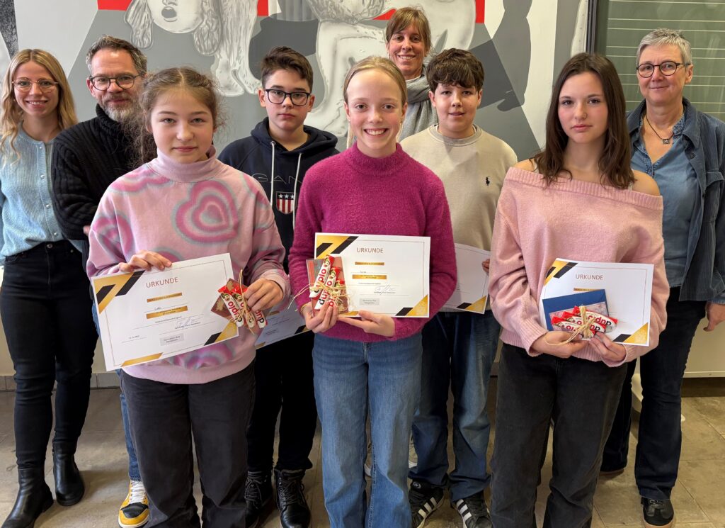 Alma Schneider (6b) sang sich beim schulinternen Vorlesewettbewerb der 6. Jahrgangsstufe in die Herzen ihrer Mitschülerinnen und Mitschüler und der Jury, bestehend aus den SMV-Sprechern (Henry Ramirez-Ziegler, Lea Heinze, Adrian Pauna), der letztjährigen Siegerin (Nele Volkheimer) sowie Herrn Gleichmann. Nachdem sich Phil Gensler (6a), Lina Paul (6a), Feline Fachet (6a) sowie Alma Schneider (6b), Melissa Dreher (6b) und Frida Behr (6b) in klasseninternen….