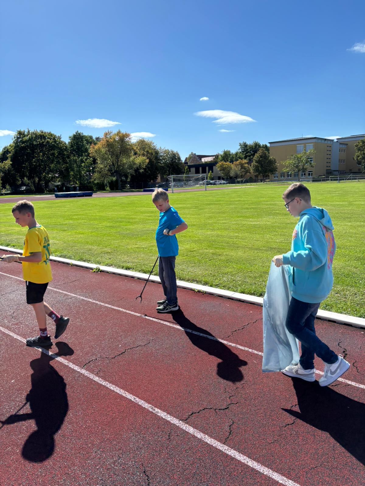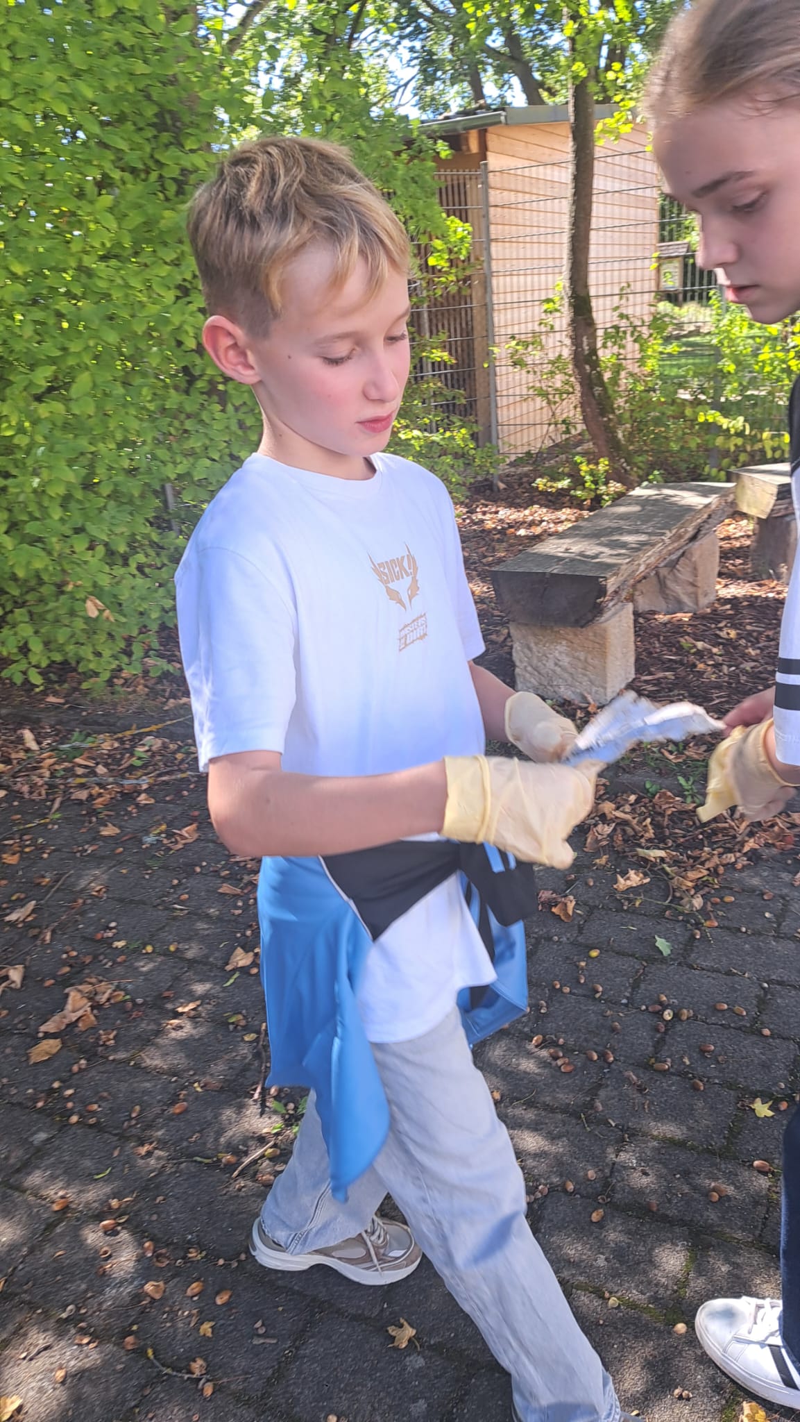 Mit Handschuhen, Müllsäcken, Greifzangen und guter Laune machten sich die Schülerinnen und Schüler der offenen Ganztagsschule am ersten OGS-Schultag an ihr Tagwerk. Bei einer gemeinsamen Müllsammelaktion rund ums Schulgelände wurde gesammelt, sortiert und gestaunt, was sich alles in Büschen und Ecken versteckt, was nicht in die Natur gehört.
