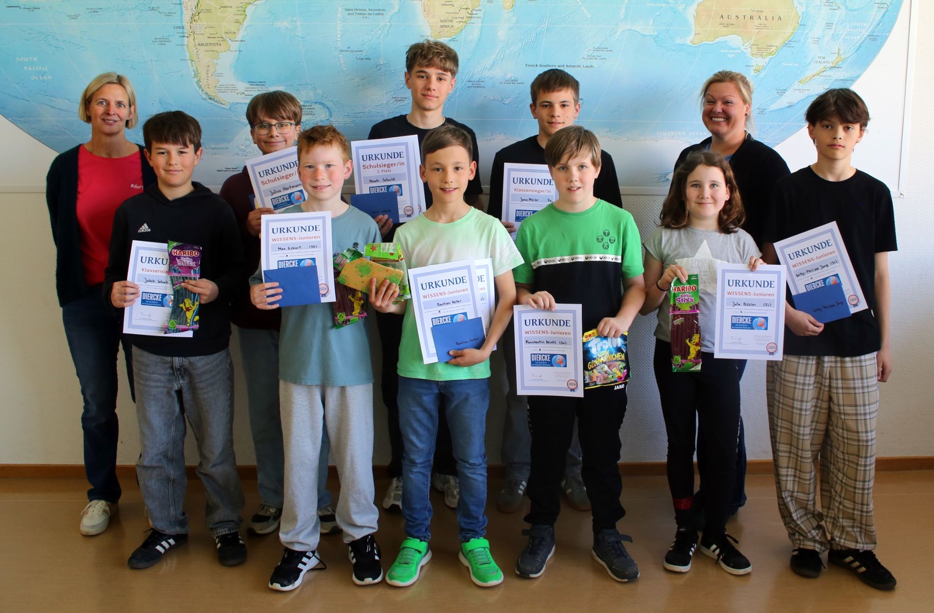Für ihre starken Leistungen durften sich alle drei Schulsiegerinnen und -sieger sowie die besten Wissensjunioren über Gutscheine und eine süße Aufmerksamkeit freuen – großzügig gesponsert vom Elternbeirat. Herzlichen Dank dafür! Das ist sicher ein zusätzlicher Ansporn, im nächsten Jahr wieder anzutreten – und vielleicht noch eine Schippe draufzulegen.